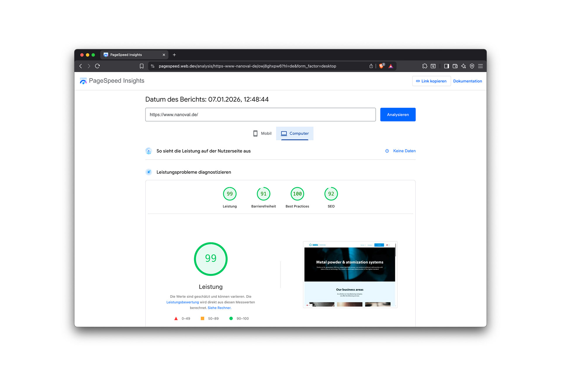 The redesigned NANOVAL website successfully communicates the company’s heritage, technical expertise, and global reach—while meeting high standards in usability, accessibility, and performance.